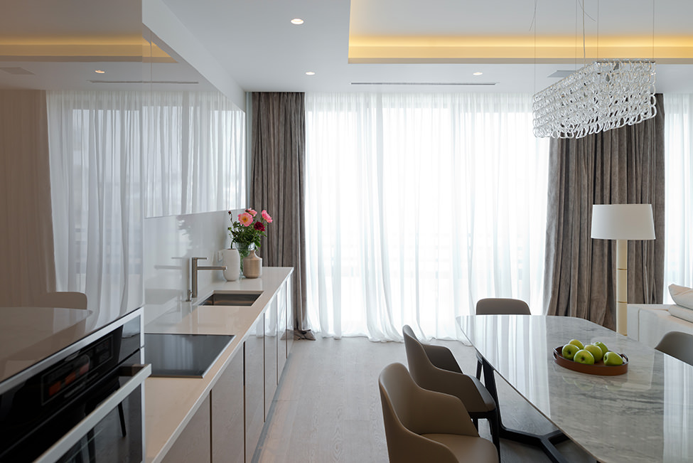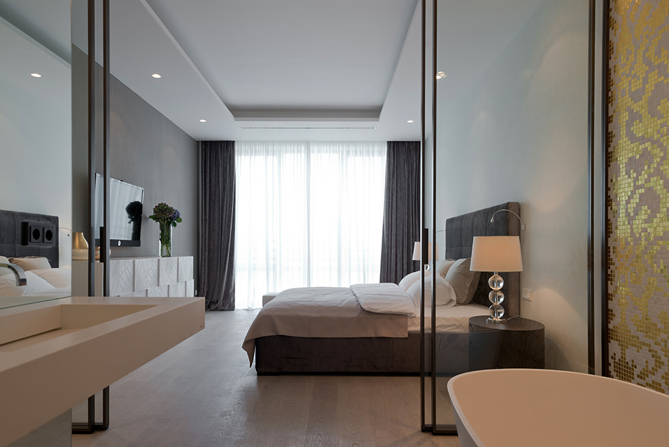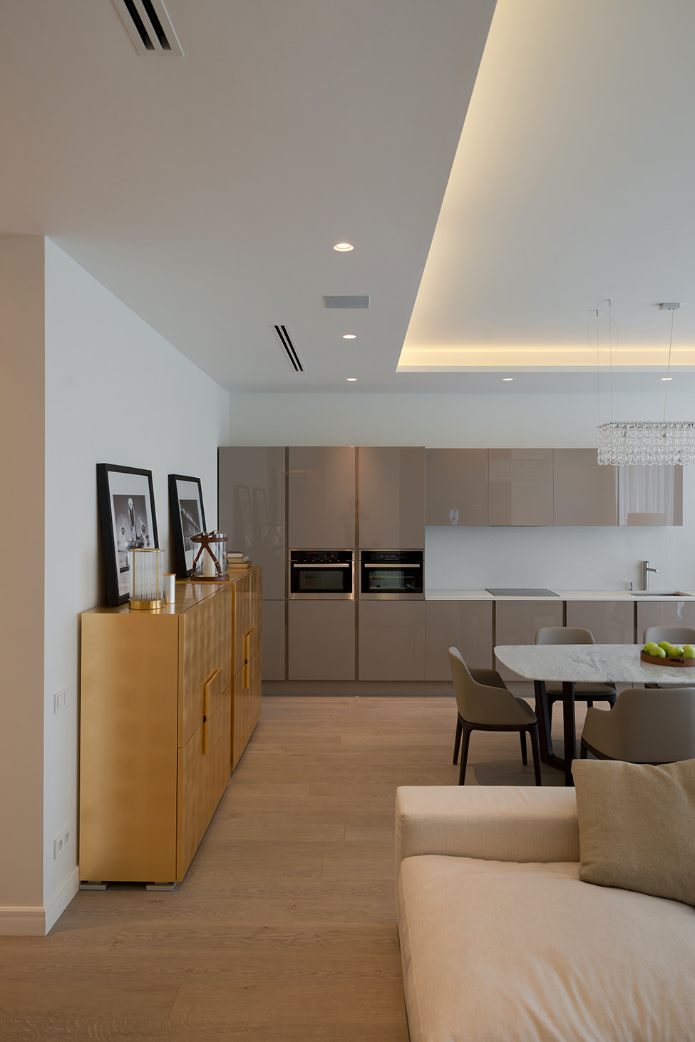 Ne plac si stim ca si voua va plac proiectele indraznete pentru decorarea unui apartament, cele care mereu vor avea ceva de spus. Acele mici “opere de arta” care reusesc sa creioneze atat de bine nevoile si personalitatea proprietarului. Si pentru asta trebuie sa apreciem designerii care stiu sa puna in practica fiecare dorinta, fiecare urma de visare si nevoie.Asa ca astazi va prezentam un proiect al lui Nikolashin Alex si Catherine Emelyanova. Ei au proiectat interioarele unor apartamente care compun complexul rezidential “Casa de pe bulevardul Pokrovsky” situat in centrul istoric al Moscovei. In primul rand, pentru ei localizarea si arhitectura au cladirii dictat un stil de interior moale, linistitor, dar si foarte contemporan. Living, sala de mese si bucataria sunt toate integrate intr-un plan deschis si comunica intre ele. Intreaga incapere abunda de lumina naturala prin intermediul celebrelor ferestre generoase. Dormitorul ramane in continuare foarte intim, cu o baie privata. Cele doua sunt elegante si emana linistea de care au atata nevoie persoanele care isi vor petrece timp aici.