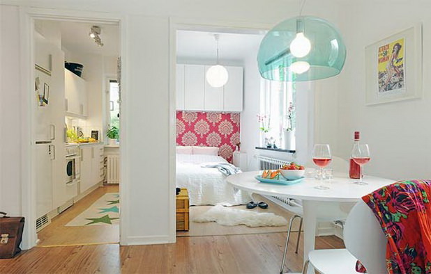 In plus, exista cateva mici “siretlicuri” care pot fi folosite pentru a scapa de problema lipsei de spatiu. Masa de bucatarie poate retractabila si montata pe perete, peretii despartitori pot fi daramati (in masura in care acest lucru este posibil) si inlocuiti cu pereti transparenti, cu spatii goale in structura lor (care in extremis, pot fi folosite si ca rafturi), tocmai pentru a separa oarecum incaperile, dar pentru a reduce senzatia de spatiu inchis si stramt.