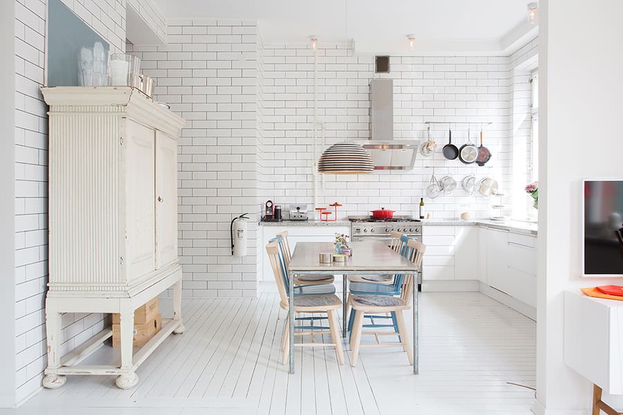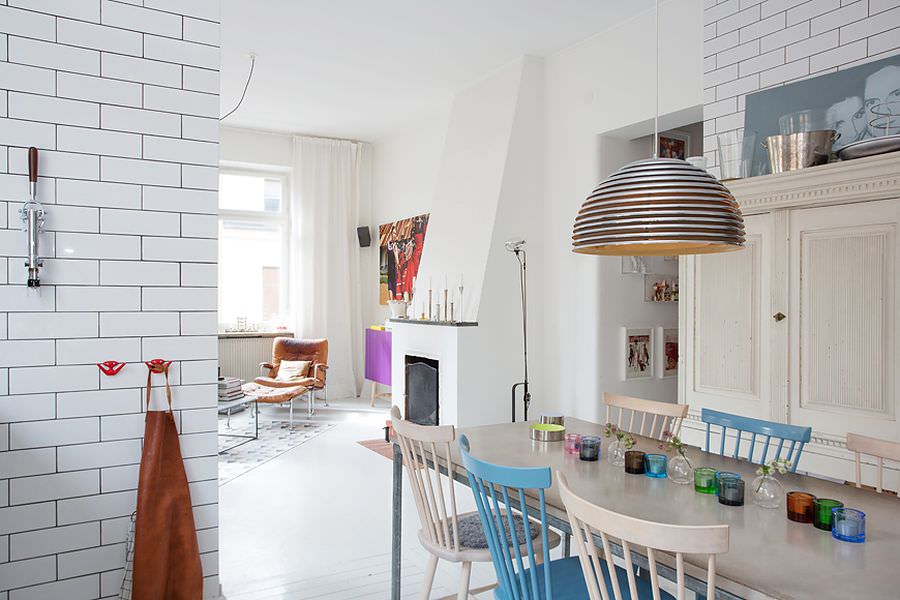 In continuare va prezentam inca o idei de amenajare a unui apartament care speram sa va placa. Este vorba despre unul din Suedia care emana eleganta si are un aer scandinav uimitor. Este o locuinta cu pereti zugraviti cu alb si un parchet din lemn alb pentru a reusi sa creeze un comuniune intre cele doua. Totodata prin alegerea acestor doua caracteristici sunt puse in evidente si piesele de mobilier. Este in schimb un apartament destul de spatios de 91 metri patrati, ceea ce le-a permis proprietarilor sa se joace cu suprafata si detaliile decorului. Mai are un avantaj pe care la noi in tara il gasim doar in apartamentele noi construite si de lux: fereste foarte mari si destul de multe. Acestea reusesc sa il lumineze si sa ii confere senzatia de spatiu si mai mare.