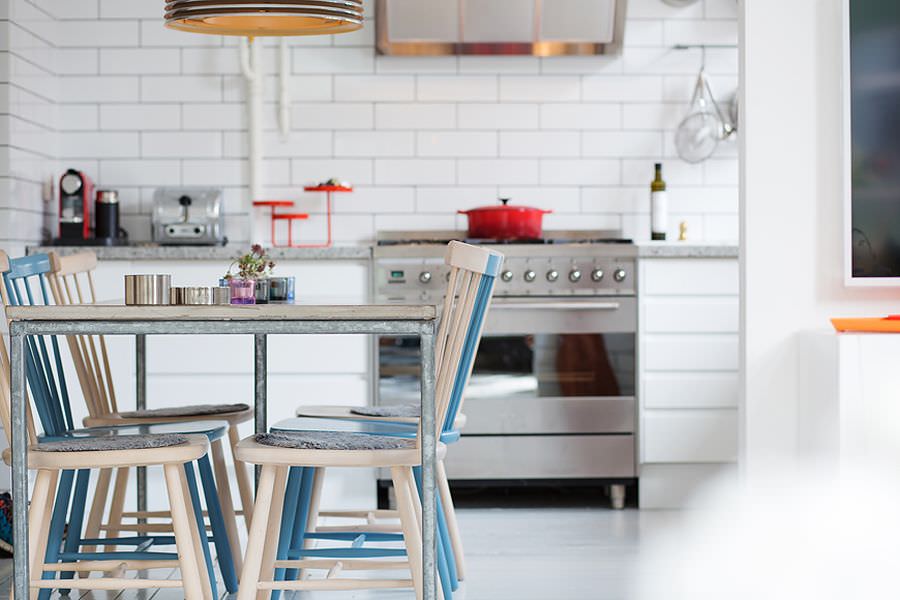 In schimb in bucatarie au fost folosite piese de mobilier metalice care ofera seriozitate si te indeamna sa respectati locul in care puteti servi o masa cu familia.