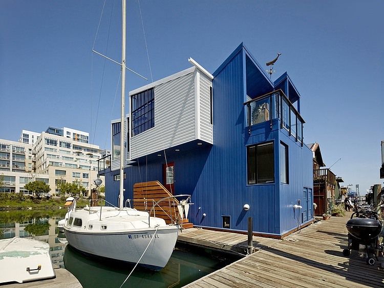 Casa de vis pe care am ales sa v-o prezentam astazi este cu adevarat unica. Este situata in San Francisco, California si este una plutitoare, pe malul apei. Reprezinta acea idee indrazneata prin intermediul careia se demonstreaza ca viata pe apa poate fi linistitoare si palpitanta in acelasi timp. Efectiv casa este construita pe un ponton si beneficiaza de parter si un etaj. Este o casa construita din lemn si piloni de hotel.