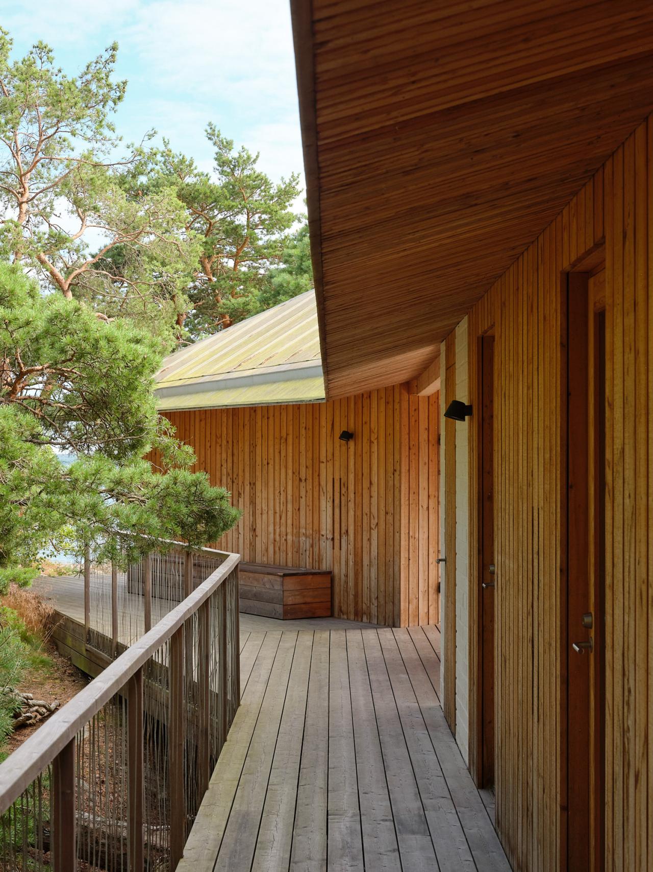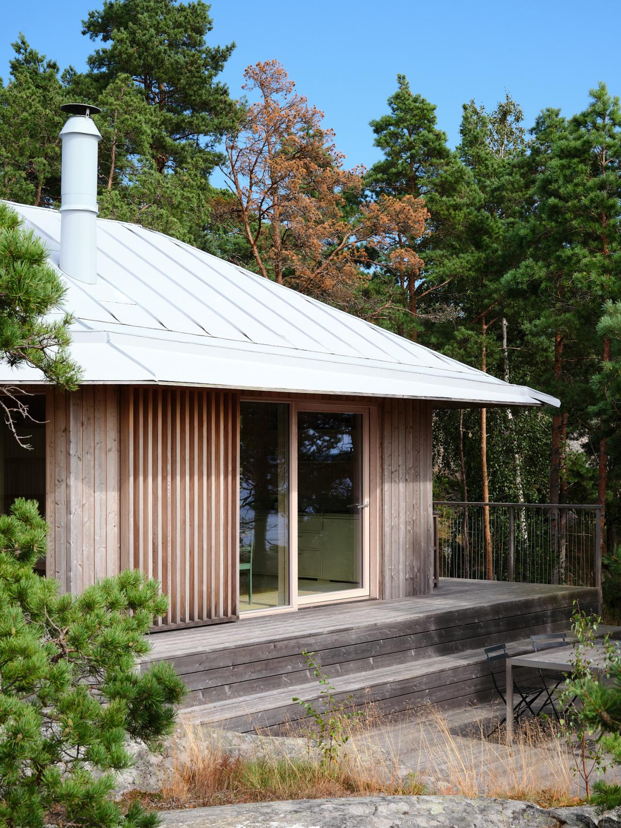 Sauna – element indispensabil al cabanelor finlandeze – este amplasata strategic pentru a primi o stralucire aurie la lumina soarelui de seara, la cea mai scurta distanta posibila pentru o baie in mare.
