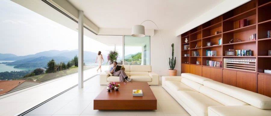 In ceea ce priveste decorurile am observat ca in ultima vreme se poarta nuantele de crem si alb pentru casele de lux. Probabil pentru ca sunt culori elegante care reusesc sa puna in evidenta fiecare piesa de mobilier si sa nu ii umbreasca din valoare si granduozitate. Un alt aspect care ne-a placut este ca livingul, si majoritatea interioarelor de altfel, reusesc sa se imbine foarte placut cu mediul inconjurator. Poate si pentru ca au fost folosite ferestrele foarte mari si transparente cu care ne-am obisnuit cand vorbim despre vile de lux.