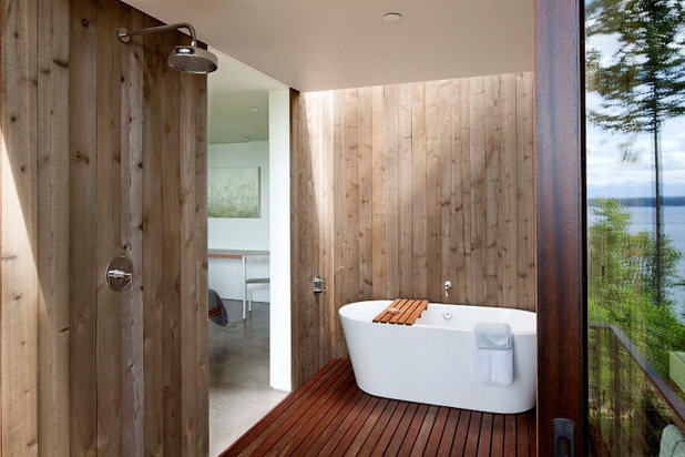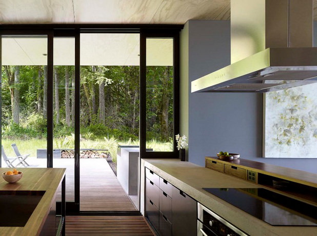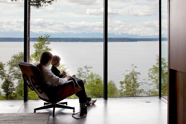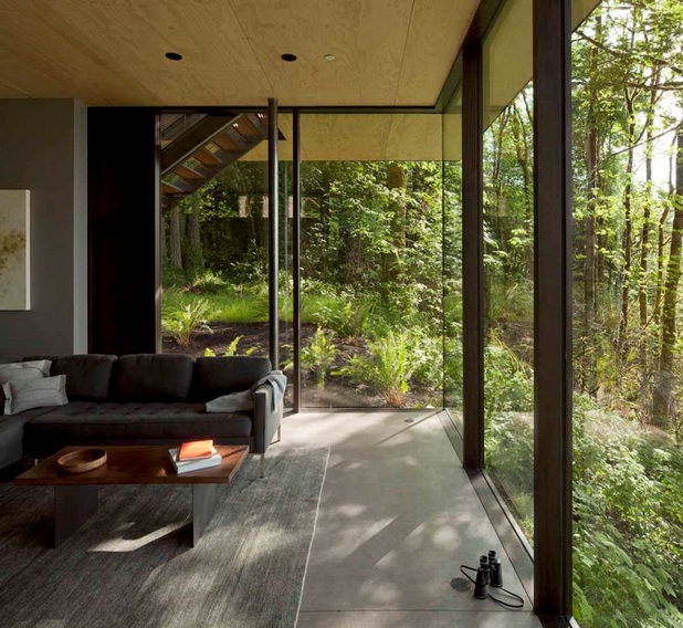 Casa din colectia de poze prezentata mai sus este intruchiparea “vie” a tot ce spuneam mai sus, o locuinta moderna in care s-a creat spatiul potrivit si suficient unei familii. Are pereti de sticla, astfel ca privelistea poate fi admirata din orice punct al casei. Fara sa aiba extrem de multa mobila si fara sa se puna accent prea mare pe electronice, casa pastreaza totusi toate utilitatile si tot confortul de care proprietarii ar putea avea nevoie. In plus, pe langa spatiul de locuit, la etaj, pe acoperis, proprietarii au amenajat o terasa (cu acces lateral) pe care se poate petrece timpul in zilele insorite.