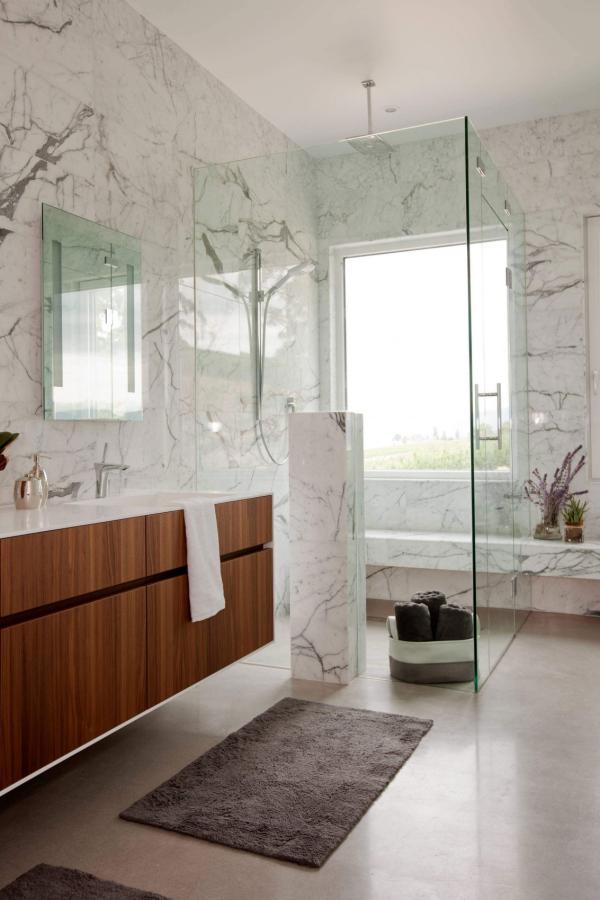 Marmura merge foarte bine in culori deschise in baie, complementare cu restul baii, dar si in anumite nuante calde-pamantii, in functie de imaginea generala a baii. In principiu, merge foarte bine in bai romane, spatioase si, de asemenea, merge foarte bine impreuna cu piatra, cu care creeaza o imagine similara cu cea dintr-un spa.