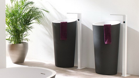 In colectia de mai sus am ales 10 poze cu idei creative de chiuvete de baie minimaliste, destul de diferite ca forma si stil, dar asemanatoare din punct de vedere al functionalitatii. Fanii stilului minimalist vor observa accentul pe liniile drepte si pe simplitate, precum si pe combinatiile de culori iesite din tipar. De exemplu, in ultimul timp au inceput sa fie la moda chiuvetele de culoare neagra (si trebuie sa recunoastem, arata chiar foarte bine!), precum si baile in care oglinzile iau cumva forma bailor. A se vedea penultima poza, in care aparatul sanitar are o forma alungita, forma preluata de oglinda. In plus, spre deosebire de majoritatea celorlalte produse similare, blatul acesteia este plan, insa forma lui este ingrosata la unul din capete, tocmai pentru a crea un efect vizual unic.