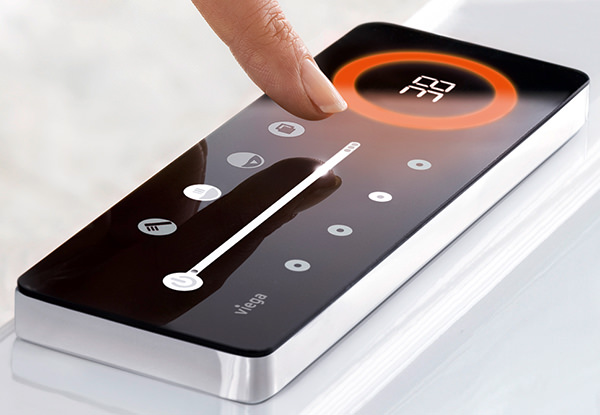 Ne dorim sa va tinem mereu in pas cu noile tendinte in materie de mobila, accesorii pentru casa sau ce culori si materiale sunt in voga in functie de perioada anului. Astazi va prezentam un dispozitiv cu totul unic! Multiplex Trio E4 este creat de cei de la Viega si este o telecomanda electrica cu sistem tactil care este dependenta de cada voastra. De acum va puteti permite sa va creati propriul spa la voi in baie si sa aveti tot confortul necesar.
