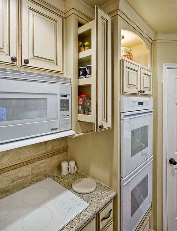 1) Sertarele glisante pentru condimente. Daca gatiti cu multe condimente, atunci stiti cat de mult spatiu pot ocupa acestea. Un sertar vertical glisant intr-un spatiu care oricum nu poate fi folosit pentru altceva poate face minuni in acest sens.
