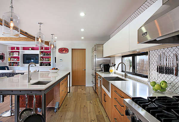 Chiar si asa, presupunand ca nu aveti cum sa aranjati toate elementele componente intr-un mod elegant, se pot gasi solutii de ordin cromatic pentru ca bucataria sa arate bine. Contrastele alb-albastru sau negru-albastru sunt la moda acum si, dupa cum puteti vedea in pozele de mai sus, ele arata foarte bine.