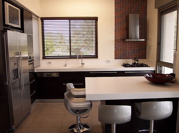 In ultimul rand trebuie sa va alegeti dulapuri cu spatii foarte utile si care sa mascheze tot ceea ce depozitati. Aparatura electrocasnica care va fi expusa va fi cea indispensabila, nimic mai mult pentru a nu aglomera spatiul. Celelalate aparate care sunt folosite mai rar le puteti depozita in cutii intr-un dulap.