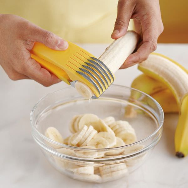 Impreuna cu acesta si cu cel prezentat mai sus pentru capsuni veti face o salata de fructe rapida, care va avea ingredientele taiate uniform. Deci pe langa faptul ca va fi foarte gustoasa, va avea si un aspect impecabil. De asemenea este de mare ajutor cand vreti sa ornati un tort cu banane. Toate rondelele vor fi taiate simetric si la fel.
