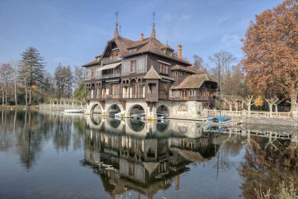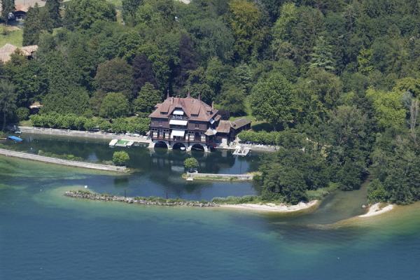 Locuinta a fost conceputa sa aiba pontonul propriu, ba mai mult, chiar si un mic port, care sa aiba dublu rol, sa protejeze eventualele ambarcatiuni, dar si locuinta in sine (care e chiar pe mal) de perioadele in care lacul Geneva este agitat. Pe langa acest aspect, acest mic… castel este inconjurat de apa si de padure, fiind pozitionat intr-un peisaj idilic, pentru care cu siguranta se vor bate in licitatie (daca se va ajunge la o licitatie) toti milionarii Elvetiei si nu numai.