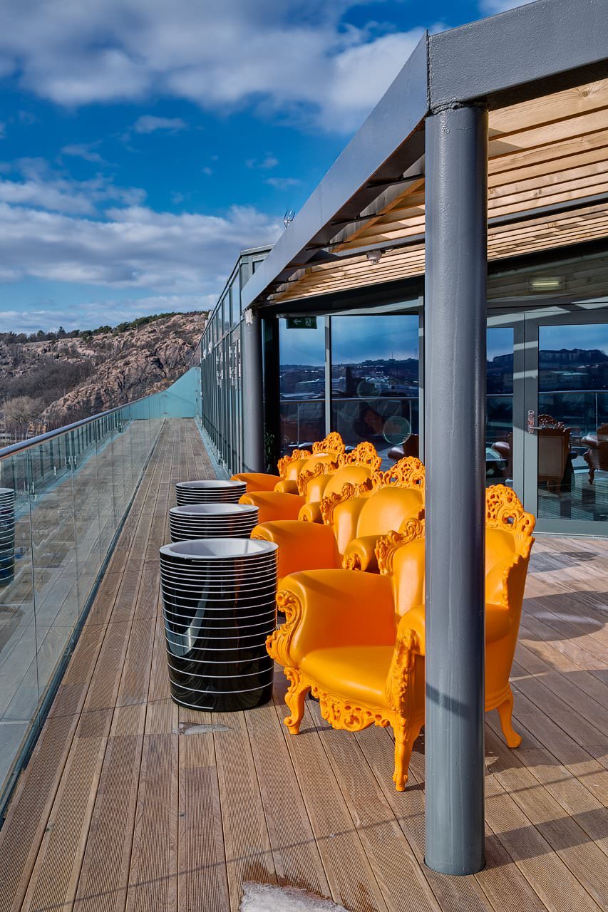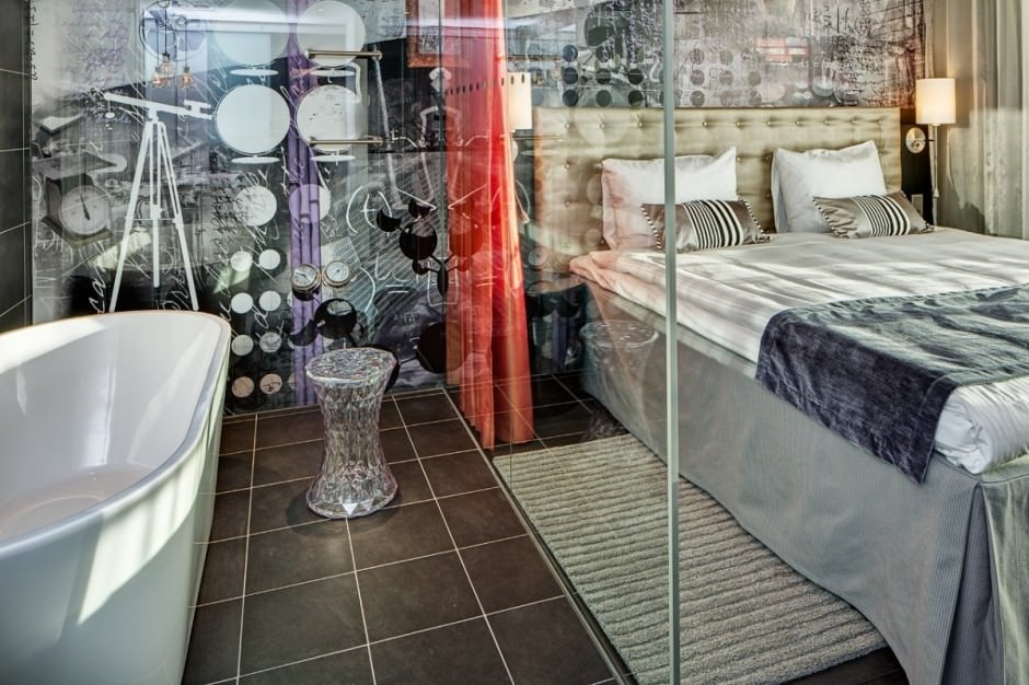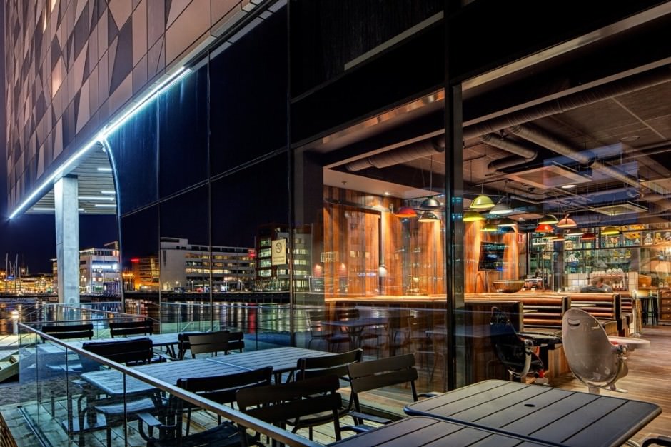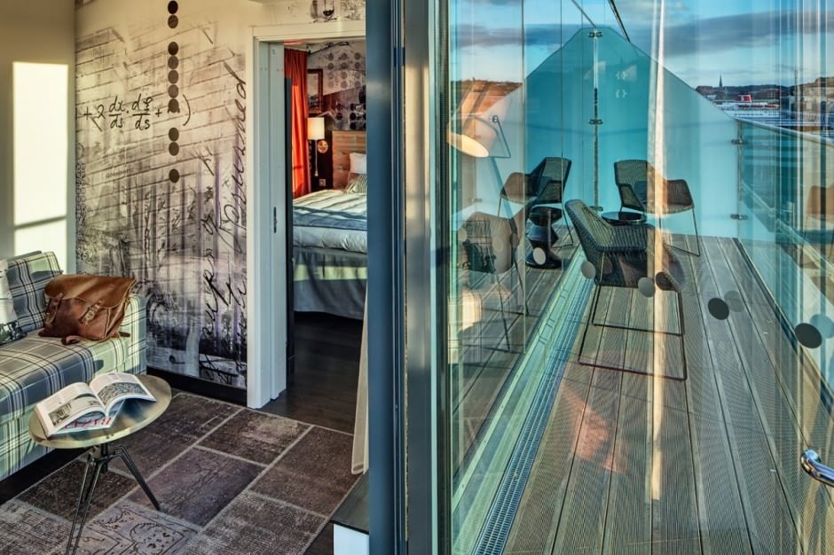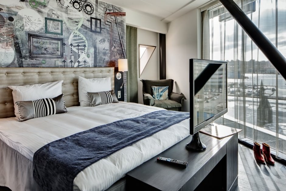 Hotel Radisson Blu Riverside din Suedia este situat in orasul Gothenburg si este un proiect inovator, cu caracteristici iesite din tipare. Interioarele indraznete si stralucitoare ale locului nu sunt ceva la care te-ai gandi ca poti vedea cand mergi intr-o vizita de afaceri, de exemplu. Este acel contrast si acea pata de nou intr-un oras minunat si istoric. In jurul sau sunt numai cladiri istorice nu foarte inalte. Astfel s-a mers pe un decor electrizant cu componente rustice.