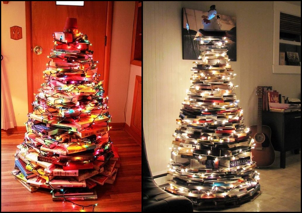 Cartile care nu au mai incaput in biblioteca sunt ‘ingredientele ‘ perfecte pentru un bradut culturalizat si …culturalizant, depinde ce pagini ajung pe perete 🙂