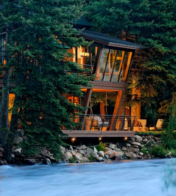 Pentru casele care au un parau la doar cativa pasi, nu gradina este cea care trebuie amenajata, ci mai degraba casa insasi. Dupa masura posibilitatilor, exact ca in poza de mai sus, construirea unei punti sau a unui balcon si amenajarea unui drum direct catre parau poate fi solutia cea mai buna si cea mai usoara, mai ales pentru cei care adora sa auda in permanenta apa unui parau curgand.