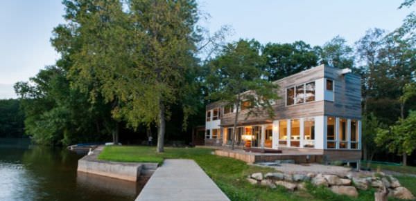 In cazul de mai sus, propietarii au construit maluri de beton pentru a proteja pamantul de langa apa, dar si pentru a avea un loc solid pe care sa se plimbe sau de pe care sa pescuiasca. A se observa si faptul ca intreaga casa a fost proiectata astfel incat propietarii sa aiba vedere la lacul care le strajuieste proprietatea.