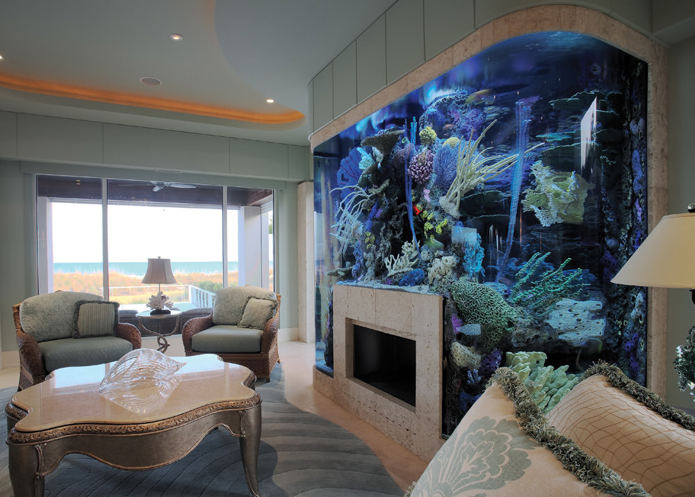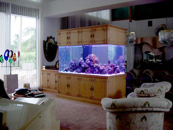 Designerii au inceput sa creeze mese de sufragerie care sunt un acvariu sau chiar sa elimine un perete despartitor normal si sa il inlocuiasca cu un acvariu imens. Un beneficiu pe care il mai pot avea acestea este ca pot deveni un sistem de iluminat al camerei pe timp de noapte. Sa nu uitam ca la pesti va trebui mereu sa aveti un neon care sa le ofere o temperatura normala. Si aici va puteti juca cu culorile si cu atmosfera pe care doriti sa o obtineti.
