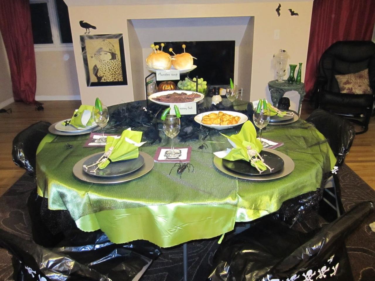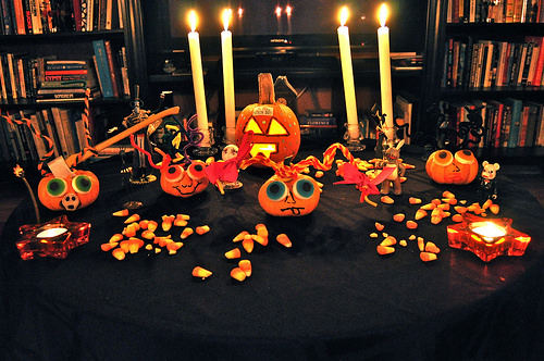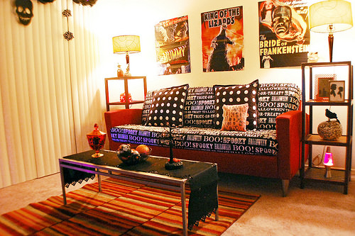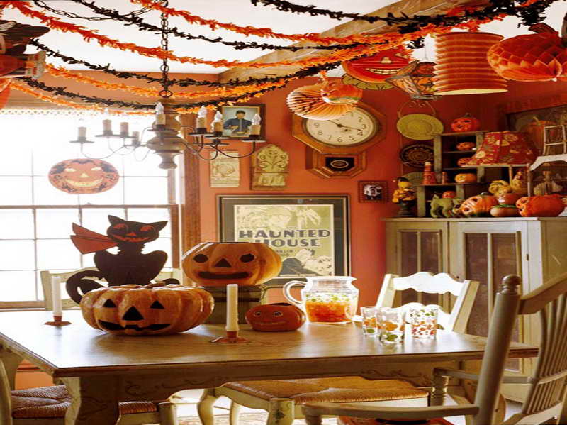 In general culorile specifice acestei sarbatori sunt portocaliu si negru. Sa nu uitam ca este ziua in care vrajitoarele si mortii pe plimba printre noi. Totul trebuie sa emane o atmosfera sumbra. Clasicii dovleci sculptati cu lumanari in interior trebuie sa fie nelipsiti. In acea perioada veti gasi in magazine spray-uri care va vor ajuta sa impanziti casa cu panze de paianjen. Puteti sa cumparati paianjeni di plastic pe care sa ii atarnati aleatoric prin casa. Trebuie sa aveti prajituri cu diferite forme, bauturi in nuante sangerii si lumini cat mai obscure.