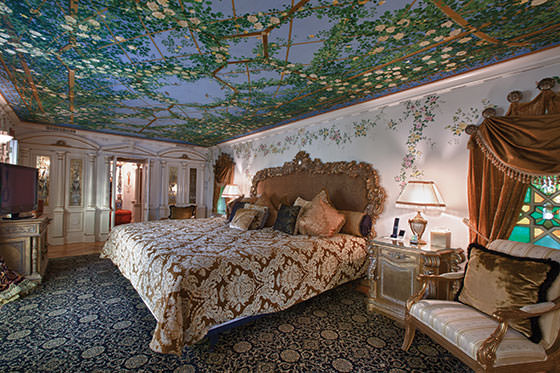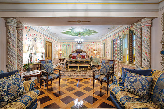 Resedinta benefiaza si de mai multe piscine luxoase imbracate in intregime in mozaic si decorate cu fire de aur. De altfel decorurile de aur se intalnesc prin toata casa: tavane, pereti, statui si mobilier. Este o casa care a fost evaluata la pretul de 100 milioane de dolari. Totul aici sclipeste si este decorat cu mobilier din cel mai exclusivist si destul de masiv. Poate a fost folosit pentru a imbraca spatiul mare de care beneficiaza fiecare camera in parte.