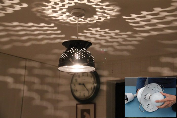 La asta cu siguranta nu v-ati gandit! Sincer, nici noi, pana cand nu am vazut-o. Este ceea ce puteti face cu o banala strecuratoare de bucatarie. In imaginea mica, puteti vedea cum i se ataseaza un bec, iar apoi uitati-va ce modele frumoase creaza pe tavan si pereti. Foarte frumos si original!